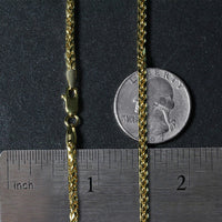 This diamond cut lite round franco chain comes in 14k yellow gold and has a width of 2.70 millimeters.