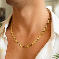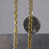 This mariner link chain comes in 14k yellow gold and has a width of 5.50 millimeters.