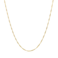 This Singapore chain comes in 14k yellow gold and has a width of 0.60 millimeters.