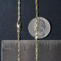 This Singapore chain comes in 14k yellow gold and has a width of 2.10 millimeters.