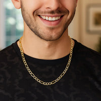 14K Yellow Gold Solid Pave Figaro Chain (3.80 mm)