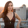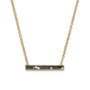 19" + 2" extension 14 karat gold plated sterling silver bar necklace with natural diamond chips set in black resin. The bar is approximately 3mm x 23mm. The diamond chips are approximately .50 ctw. The necklace has a lobster clasp closure. .925 Sterling Silver