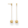 These golden globes add the perfect touch any outfit. 14 karat gold plated sterling silver earrings. Bead ends measure 10mm and suspend from a 1.1mm box chain and feature a 4.2mm ball post. Full hanging length is 2.5". .925 Sterling Silver