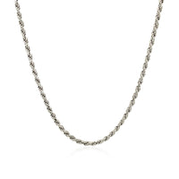 This classic chain is crafted in gleaming sterling silver with rhodium polish. Featuring a diamond cut rope type design, it has a width of 1.8 millimeters and is secured with a lobster clasp.