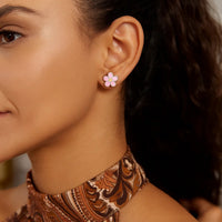 Sterling Silver Enamel Pink Flower Stud Earrings