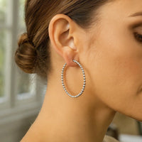 Elegant sterling silver medium bead hoop earrings featuring a polished row of smooth, rounded beads that catch the light beautifully. Their timeless design offers a perfect balance of sophistication and versatility, ideal for both everyday wear and special occasions.