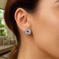 Classic love knots combine with a modern twist of shine and contrast in these sophisticated sterling silver earrings. Post earrings are 13mm in diameter and are held in place by pushback clasps.