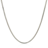 This rhodium-plated box chain comes in sterling silver and has a width of 1.8 millimeters.