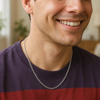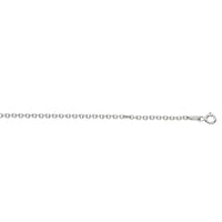 This rhodium-plated cable chain comes in sterling silver and has a width of 2.20 millimeters.
