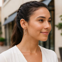 Delicate with its thin style, these polished hoop earrings exude stunning glamour. Secured with snapbacks and made of fine sterling silver with rhodium plating.