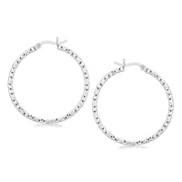 Sterling Silver Rhodium Plated Woven Style Polished Hoop Earrings(2x30mm)