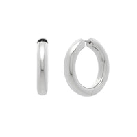 Classic sterling silver round hoop earrings featuring a polished finish and secure snap clasp closure. The timeless circular design offers effortless elegance and comfortable wear, making these versatile hoops perfect for everyday style or special occasions.