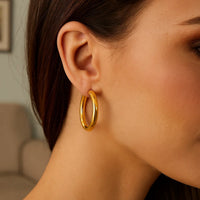 Elegant sterling silver yellow gold plated round hoop earrings featuring a polished finish and classic circular design. Lightweight and versatile, these radiant hoops bring warmth and sophistication to any look, perfect for everyday wear or special occasions.